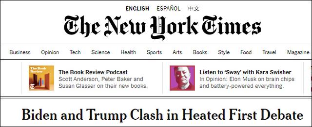《纽约时报》:第一场辩论激烈,特朗普和拜登争论不休。