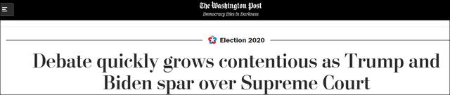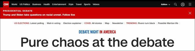 主持人华莱士总是要及时“踩刹车”,才能勉强拉住各说各话的两人,得以进入下一个议题。除了CNN,很多美国媒体都已经聚焦了此次辩论混乱。《华盛顿邮报》说:“随着特朗普和拜登在最高法院问题上争吵不休,辩论迅速升温。”