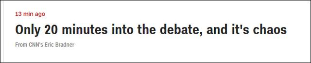 美国大选首场辩论开始没多久,就已经朝着不可控制的局面驶去了。CNN吐槽,“才开始20分钟,就已经陷入混乱。”