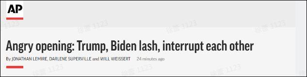 美联社以《愤怒的开场:特朗普、拜登互相攻击、打断对方》为题,注意到在辩论中,特朗普频繁打断拜登,拜登则称特朗普是小丑。
