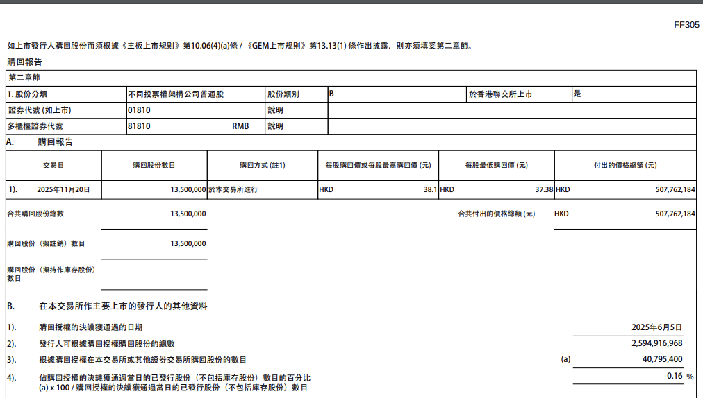 小米集团斥资超5亿港元回购股份,规模为近期最大