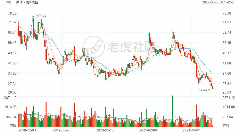 微博自美股上市以来也经历了蓄力、上升、回调三个阶段,回调后也有一波小幅拉升,只是推力不足,没有冲到更高的位置。