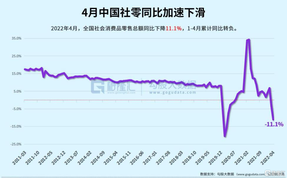 另一方面,多地疫情反复对整体消费形成拖累,我国社会消费品零售总额出现了较大波动。据国家统计局数据,今年4月,全国社会消费品零售总额为29483亿元,同比下降11.1%,1-4月累计同比下降0.2%。