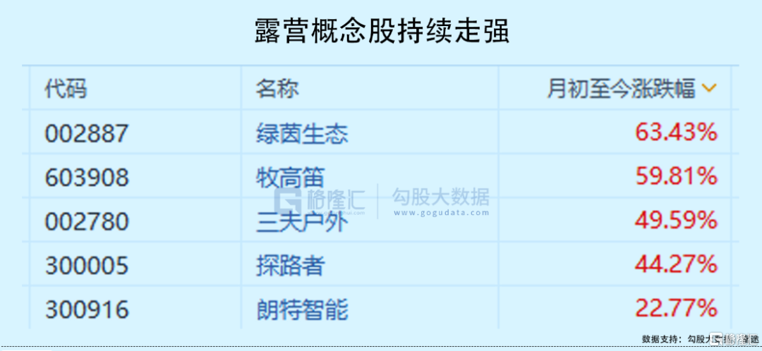最近,一股露营风潮兴起,朋友圈被搭帐篷的“精致露营”场景刷屏。五一期间“露营”在各网站访问热度达到历史峰值,在淘宝上,登山露营、露营野炊等相关商品的成交额同比增长均接近200%。同一时间,资本市场更是掀起了露营概念股涨停潮。