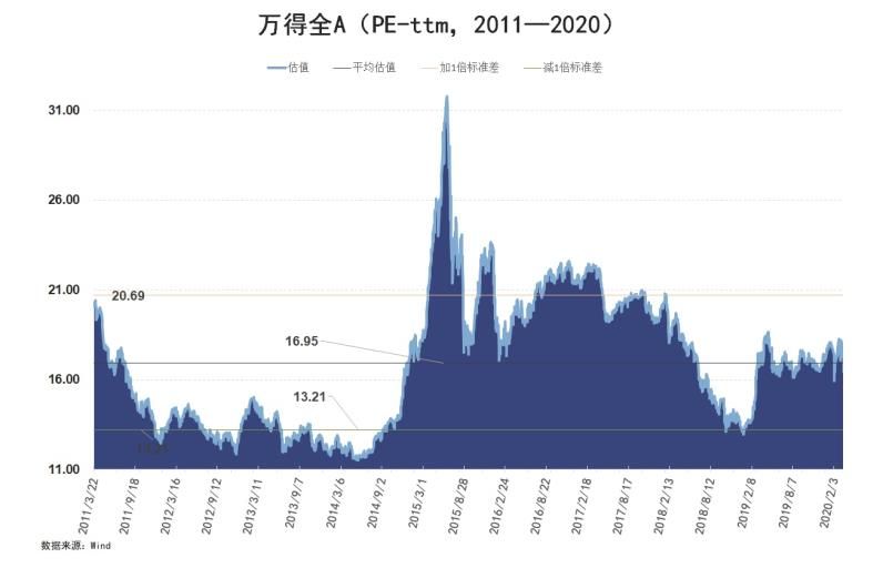 截至上周五收盘(3月20日),万得全A市盈率(PE-ttm,)报16.24倍,市净率(PB-lf)报1.58倍,分别是十年均值的95.8%、81.5%。