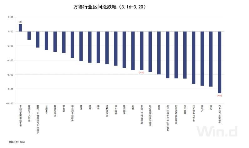 受市场回调影响,上周,仅食品行业上涨,其他Wind二级行业均出现下跌,其中家庭与个人用品、制药、公用事业跌幅较小。房地产、保险、汽车与零部件行业出现较大跌幅。出现这种现象的原因是,外资不断减持,以中国平安为代表的外资重仓股出现大幅下跌。