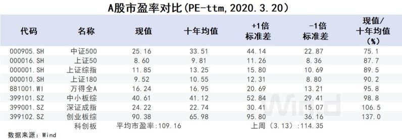 截至3月20日收盘,A股估值优势仍然较为明显,即便是最贵的创业板,估值也仅是十年均值的137%,而上证50市盈率仅有十年均值的87.7%。