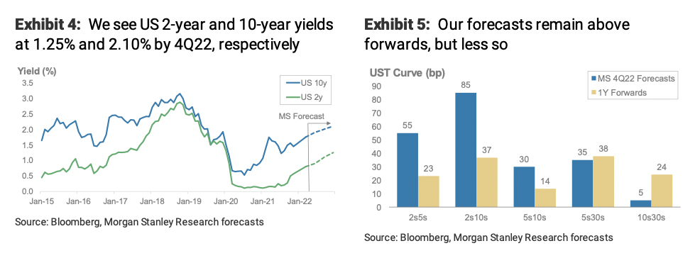 大摩对最终利率的预期不变,将2022年第四季度10年期美债收益率预测保持在2.10%。