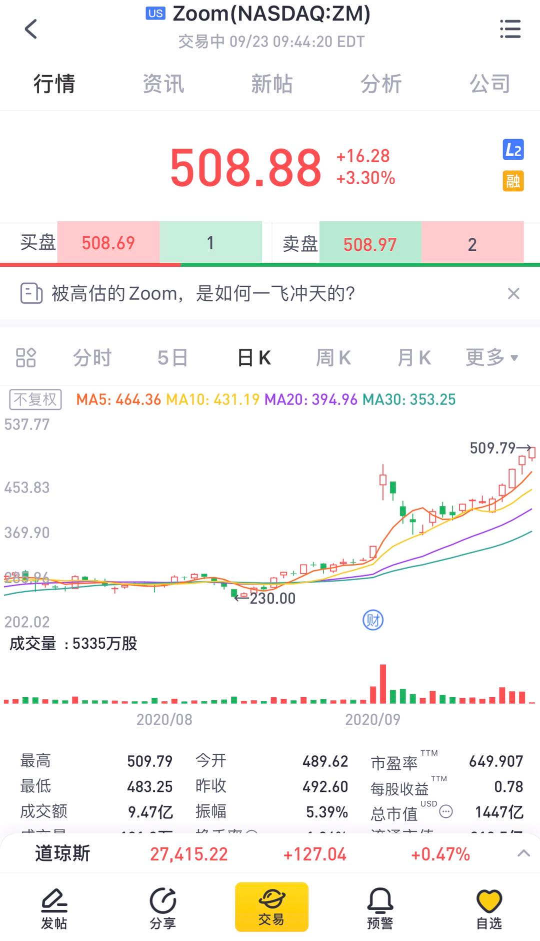 9月23日讯,zoom涨超3%,盘中股价连续创新高,年初至今zoom的股价已涨了6倍!