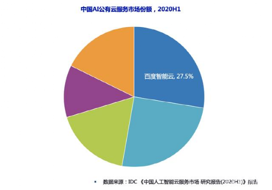 去年12月23日,全球知名咨询机构IDC发布《中国人工智能云服务市场研究报告(2020H1)》报告,在中国AI公有云服务市场,百度智能云市场份额排名中国第一,这也是它连续三次在AI Cloud市场排名第一。其中,百度智能云在人体识别、图像视频、NLP(自然语言处理)等领域市场份额第一,整体行业用户认知度最高。