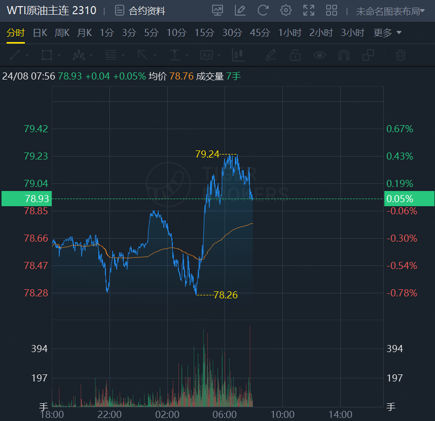 原油期货小幅走高,截止发稿,WTI原油涨0.05%,报78.93美元/桶;布伦特原油涨0.11%,报83.3美元/桶。