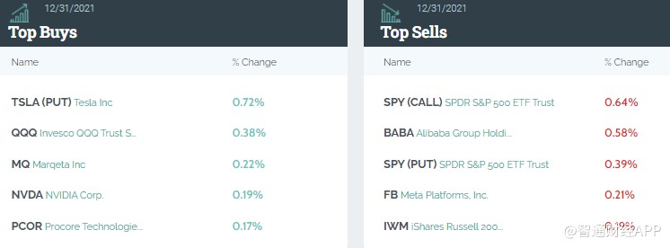 前五大卖出标的分别是:标普500指数ETF看涨期权(SPY.US,CALL)、阿里巴巴(BABA.US)、标普500指数ETF看跌期权(SPY.US,PUT)、Meta Platforms(FB.US)、安硕罗素2000ETF(IWM.US)。