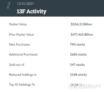 根据美国证券交易委员会(SEC)披露,高盛(GS.US)递交了截至2021年12月31日的第四季度(Q4)持仓报告(13F)。