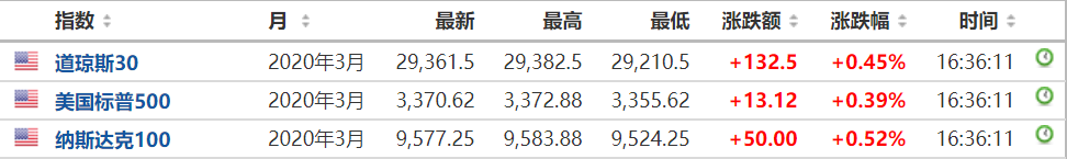 美国三大股指期货盘前小幅上涨,截至发稿,道指期货涨0.45%;标普500指数期货涨0.39%;纳斯达克100指数期货涨0.52%。