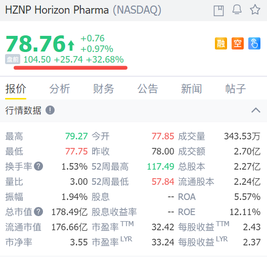 Horizon盘前涨超32%!与安进等公司就收购进行谈判。Horizon Therapeutics表示,其董事会正在与三家制药巨头就潜在收购要约进行初步谈判。据报道,这家市值约180亿美元的生物科技公司正在与制药巨头安进、赛诺菲和强生旗下的Janssen Global Services进行谈判。此外,Horizon补充称,不能确定是否会收到任何公司的收购要约。据了解,这三家制药巨头今年一直在积极进行并购交易。