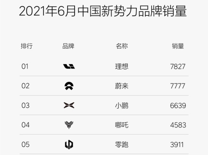 据公开信息显示,理想ONE的2021年6月上险量为7827辆,在造车新势力销量排行榜中,超越其他竞争对手顺利登顶。理想汽车凭借该单一 型销量超过蔚来3款 型、小鹏2款 型,从新造 第4名直升至第1名。