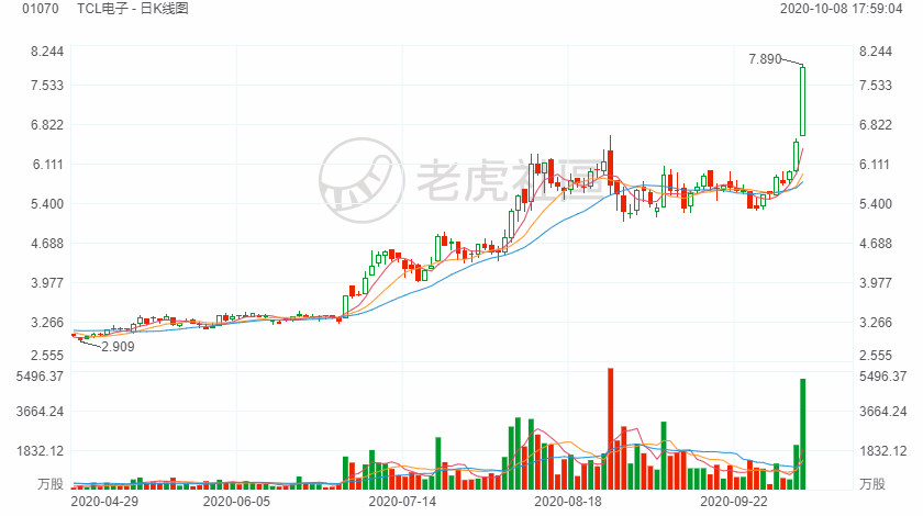 10月8日收盘,小米股价下跌3.9%,TCL电子大涨20.65%,国庆假期后四个交易日已经累计上涨逾33.6%。陆玖财经注意到公司近期股价上涨,主要原因在于市场流传的关于“华为有可能出售荣耀品牌业务,而TCL电子有望成为收购方”的传言。但是从目前的消息源来看,相关传言可能并未最终落实。