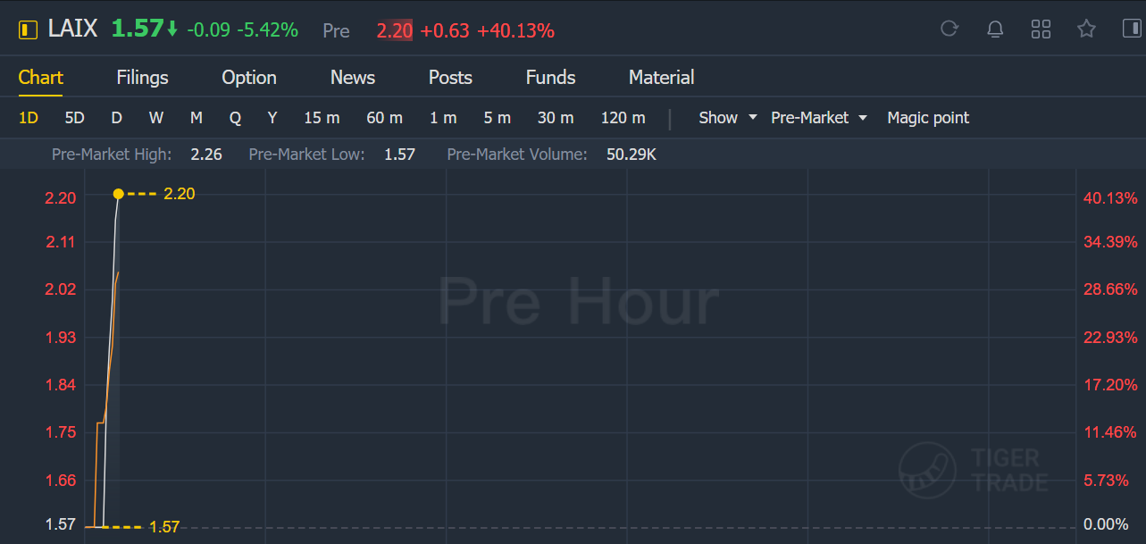 LAIX Inc shares once soared 40% in pre-market trading,after announcing First Quarter 2021 Unaudited Financial Results.
