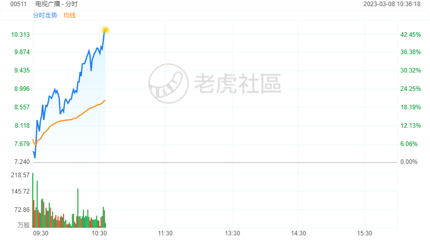 3月8日,TVB母企电视广播大涨超38%,创2020年7月以来新高,近4个交易日已累涨超130%;消息面上,TVB淘宝首次直播,6小时销售额2350万。