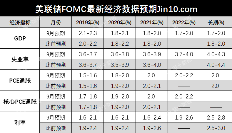 美联储FOMC 9月点阵图一览:
