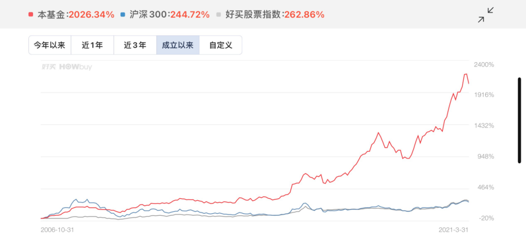 旗舰人民币产品景林稳健成立于2006年,期间市场历经跌宕——07年疯狂牛市、08年金融危机、13年14年万众创新、15年盛极而衰、17年蓝筹崛起、18年凄风苦雨、19年20年高歌猛进……但复利站在了景林这一边,15年下来创造了21倍的业绩,光是最早一笔6000万人民币的投资,到现在就已经滚雪球般变成了12个小目标。