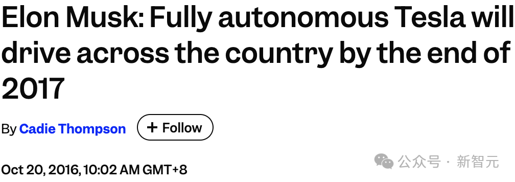 彼时,马斯克意气风发,豪言:「到2017年底,特斯拉将能够从洛杉矶自动驾驶到纽约,全程哪怕你碰一下方向盘都算我输。」
