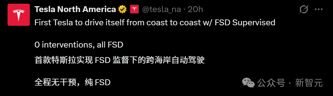 刚刚,特斯拉FSD,完成全球首个完全自动驾驶的横穿美国。