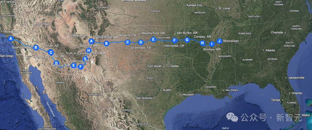 如果你亲自开过这段行程,就会明白全程的路况有多么复杂。然而从加州的高速公路,到中部的城市街道,再到东海岸的复杂路况,FSD一次性全部搞定了!