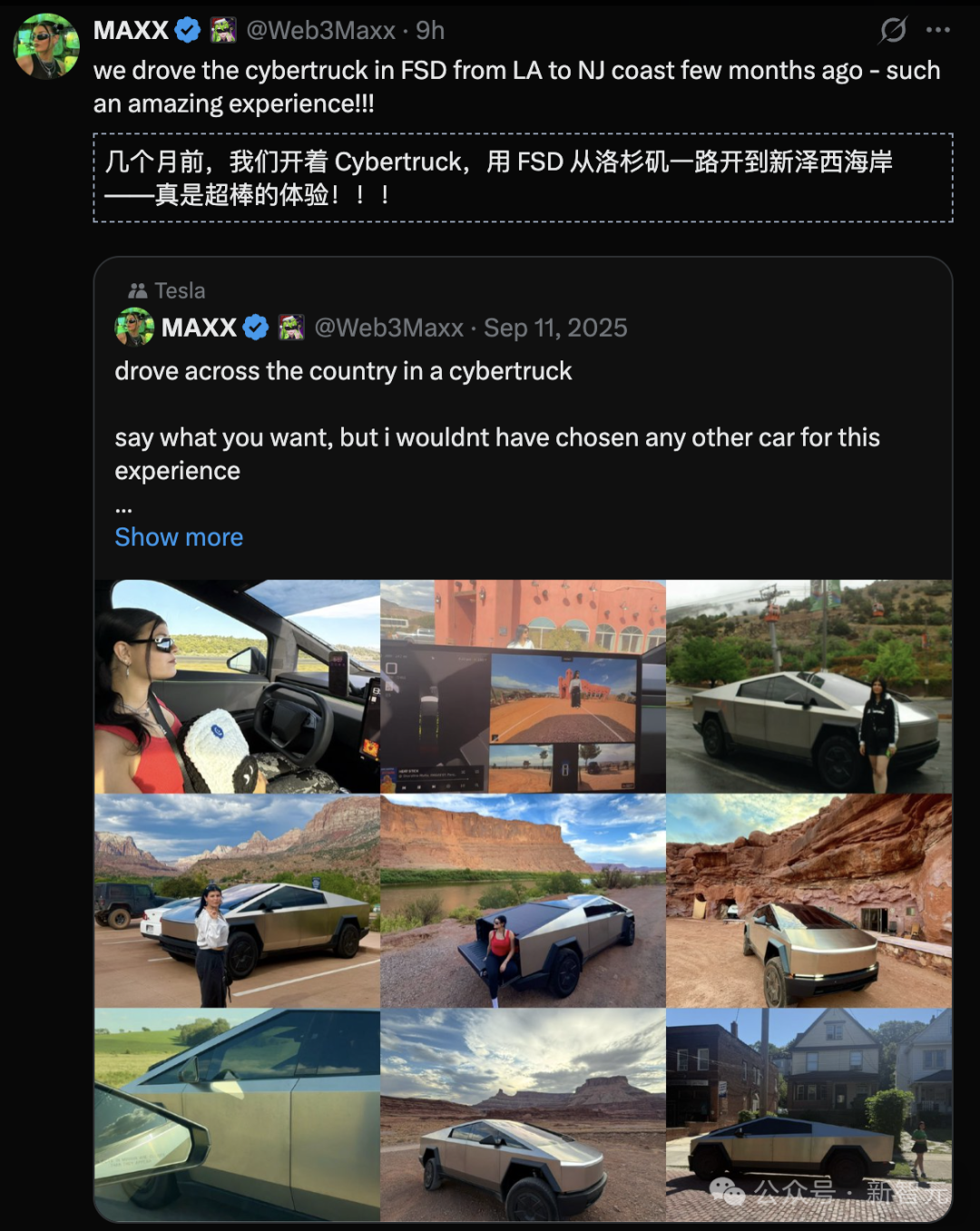这场AI主导的公路旅行,直接震撼了全球特斯拉车主。