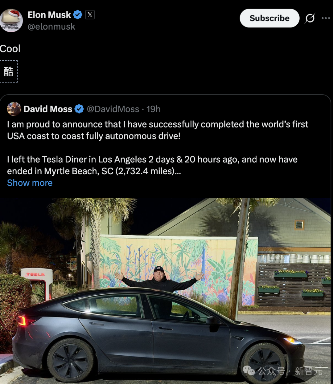 特斯拉掌门人马斯克,也激动转发莫斯的推文:「酷!」