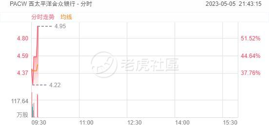 5月5日,美股地区性银行股反弹,西太平洋合众银行涨超56%,