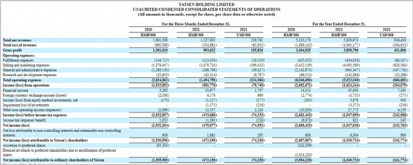 其财报显示,逸仙电商营收增速在2019年达到高峰,之后便在逐年下降。2019—2021财年,逸仙电商的营收分别为30.3亿元、52.3亿元、58.4亿元;营收增速分别为377.11%、72.6%、11.6%。而如果从单季度来看,完美日记的营收已经出现负增长。