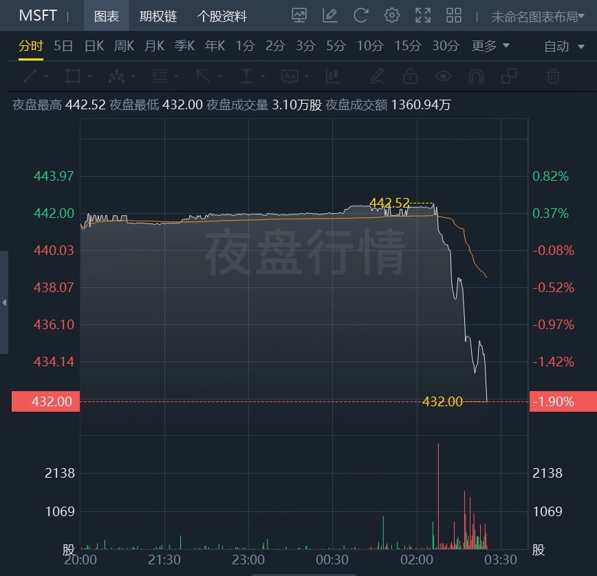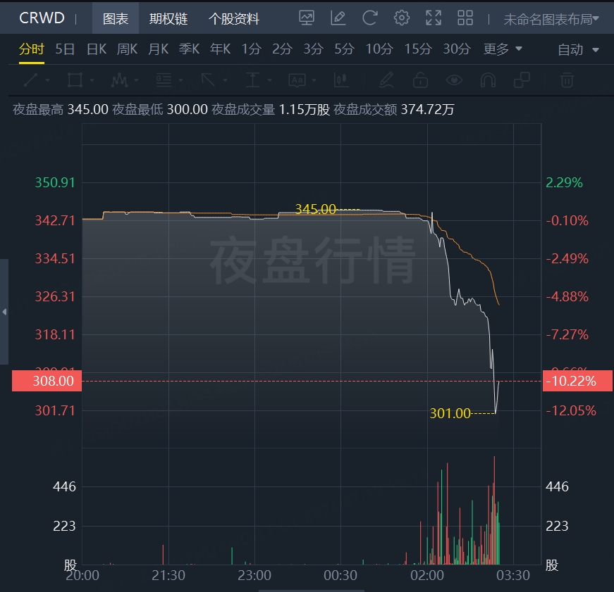 7月19日,美股夜盘时段,CrowdStrike跌超12%,微软跌近2%;市场消息:微软全球范围发生的技术故障问题与CrowdStrike的软件有关。