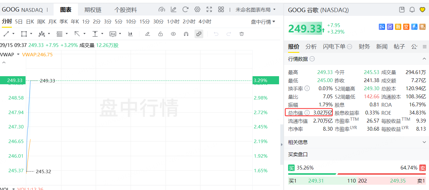 9月15日,谷歌涨超3%,续刷历史新高,总市值首次升破3万亿美元。消息方面:谷歌Nano Banana图像生成模型爆火,Gemini在美区App Store中下载量超过ChatGPT。截至目前,美股总市值超3万亿美元的上市公司扩大至4家,分别是英伟达、微软、苹果、谷歌。