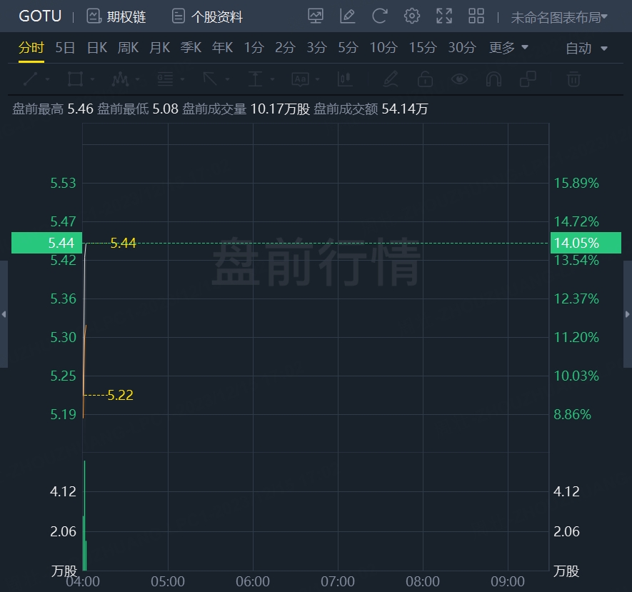盘前续涨逾14%,该股近四个交易日累涨近73%;消息面:高途佳品抖音官号“高途佳品”4天涨粉超99万,一场直播带货500万-750万,相比一周前带货成绩暴涨500倍。