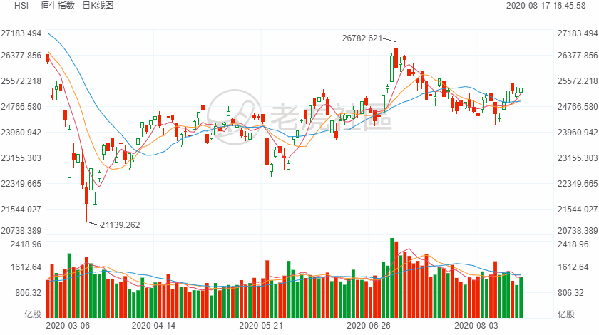 8月17日周一,香港股市早盘小幅高开后快速拉升,随后高位整理,午后涨幅略有回落。中资券商、内地保险、黄金、建材水泥板块涨幅居前。截至收盘:恒生指数涨0.65%,报25347.34点;恒生科技指数涨0.52%,报7075.03点;恒生中国企业指数涨1.16%,报10385.90点;恒生香港中资企业指数涨0.34%,报4149.84点。