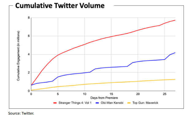 不过,奈飞表示其未来将有“更多时间来了解这些问题,以及如何最好地解决这些问题”,奈飞将始终把重点放在内容上,该公司将《Stranger Things》第四季视为其品牌的一次重大胜利因为其不仅创下了该公司的收视率记录——前四周产生了13亿小时的观看量,还获得了2022年艾美奖的多项提名。此外,《Obi-Wan Kenobi》和《Top Gun Maverick》也是其内容重点。