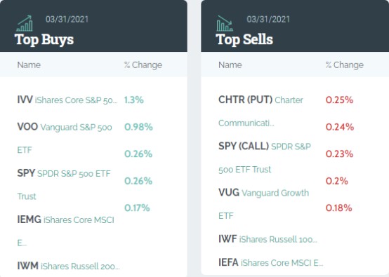 前五大卖出标的分别是:特许通讯公司看跌期权(CHTR.US,PUT)、标普500指数看涨期权(SPY.US,CALL)、Vanguard MSCI成长股指数ETF(VUG.US)、罗素1000成长指数ETF(IWF.US)以及iShares安硕核心MSCI EAFE 指数ETF(IEFA.US)。