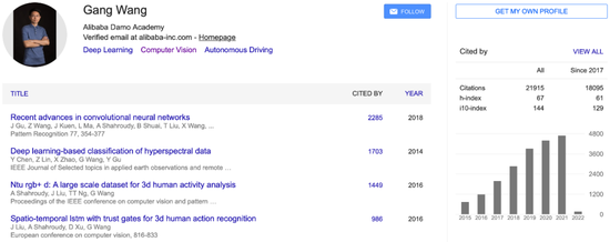 Google Scholar数据显示,王刚的论文被引量超过20000,h-index高达67,是一位实打实的高被引学者。