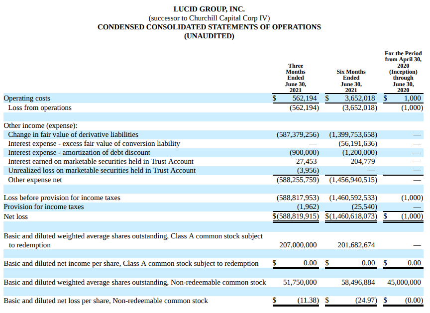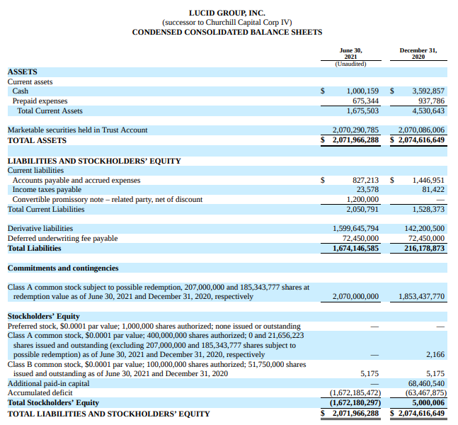 Due to accumulated losses related to the development of the Lucid Air, among other things, Lucid has a net negative equity of $1.7B. The company also has about $1.7B in liabilities and will likely have to raise equity to finance the production ramp and the market introduction of the Lucid Air.