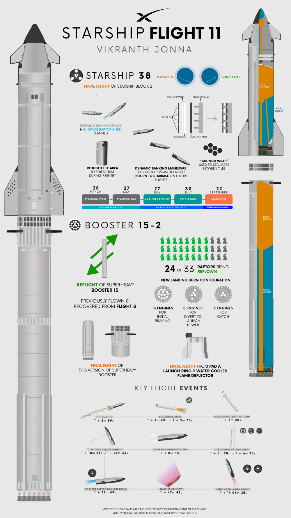 星舰十一飞组合体相关信息,来源@vikranthjonna