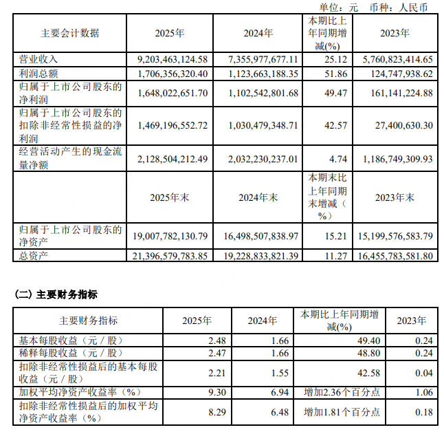 3月30日,兆易创新公告,2025年实现营业收入92.03亿元,同比增长25.12%;净利润16.48亿元,同比增长49.47%。公司拟向全体股东每10股派发现金股利人民币7.5元(含税),合计拟派发现金红利人民币5.25亿元,占公司2025年度合并财务报表归属上市公司股东净利润的31.88%。
