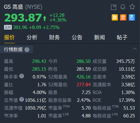 截至发稿,高盛盘前涨2.75%。