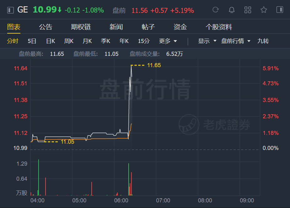 通用电气盘前短线拉升,涨超5%。