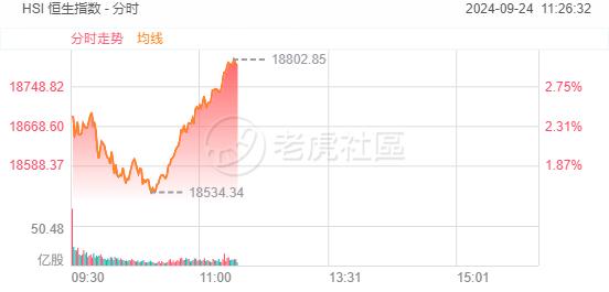 港股持续走高,恒生指数涨幅扩大至3%,恒生科技指数现涨3.78%,资源、地产、金融涨幅居前。