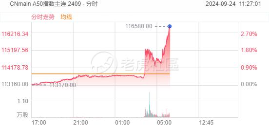 富时中国A50指数期货涨幅扩大至3%。MSCI中国A50互联互通指数期货涨2.7%。