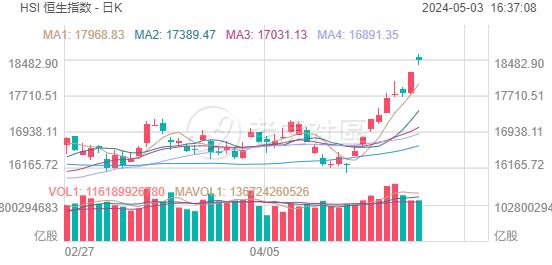 周五,港股牛气不减!隔夜美股收涨,纳斯达克中国金龙指数大涨超6%;人民币走强,离岸一度升破7.19;再加上香港首季GDP升2.7%胜预期,各大行齐调升香港全年GDP增长预期,上述三大因素推动今日港股再度上涨。恒生指数收涨1.48%,为连续第九个交易日收涨,创2018年以来最长连涨纪录,恒指大市成交额达1161.9亿港元;恒生科技指数收涨2.74%,创2023年11月以来最高水平;国企指数涨1.71%。