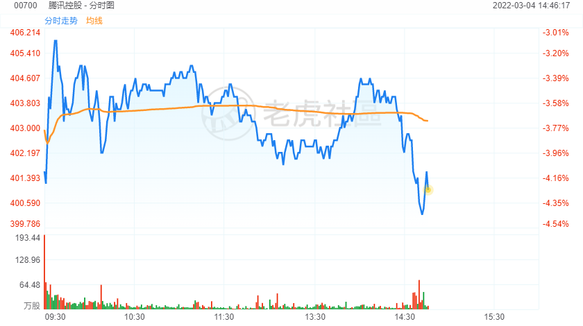 异动 | 腾讯控股触及400港元关口,创2020年5月以来新低