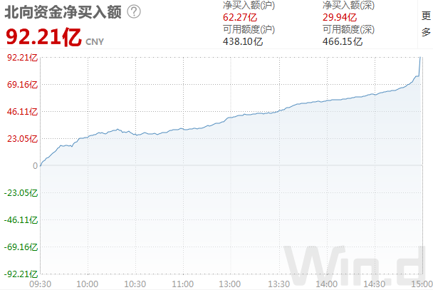 从北上资金全天买入趋势来看,呈持续买入态势,特别是尾盘集合竞价买入金额高达15亿元,可见对A股市场的追捧。