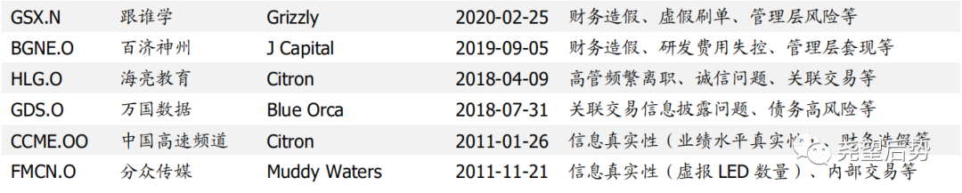 我们梳理了2010年以来被被海外做空机构“狙击”的案例,共计50例。接下来我们将以此为样本进行相关统计并探寻其中的规律。